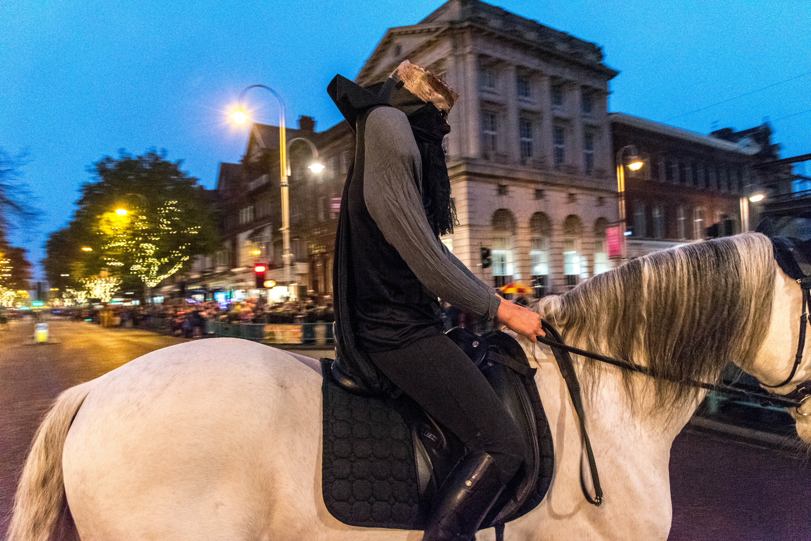 The headless horseman entertained the crowds whilst the cavalcade assembled.